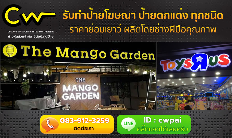 ออกแบบ ผลิต ติดตั้ง ครบวงจร พร้อมทั้งออกแบบฟรี!!! ทำป้ายทุกชนิดในราคาย่อมเยา พร้อมทั้ง ดูหน้างานฟรีไม่เสียค่าใช้จ่าย วาดภาพบนผนัง และวัสดุต่างๆๆ ขาย ผลิตป้าย ตกแต่งป้ายส่งออก ในราคาผู้ผลิต